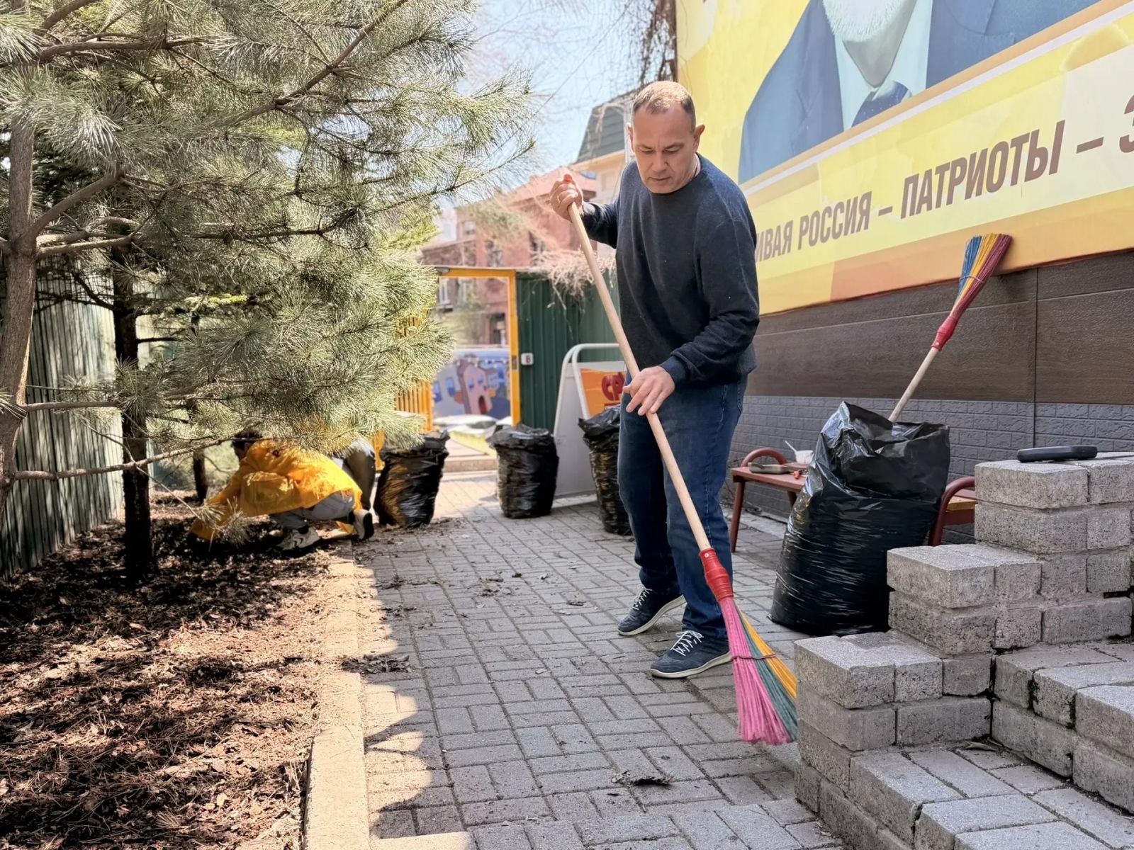 С самого утра у штаба партии было оживлённо. Взрослые и молодёжь распределили участки: кто-то взялся за прошлогоднюю листву и сухие ветки, кто-то – за косметический ремонт внутри здания, а кто-то занялся подготовкой палисадника к новому сезону.