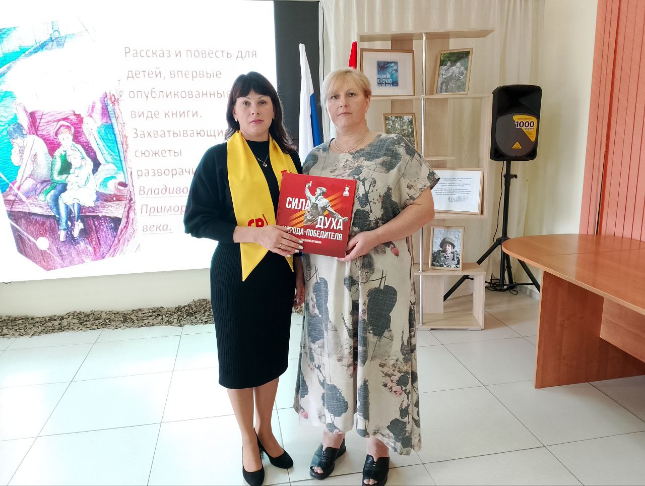 Центральная городская библиотека имени Максима Горького в Лесозаводске получила ценный подарок от местного отделения Партии "СПРАВЕДЛИВАЯ РОССИЯ – ЗА ПРАВДУ". Председатель отделения Юлия Харько лично передала в фонд библиотеки сборник "Сила духа народа-победителя. Завещание потомкам" и информационно-аналитический вестник "Диалог поколений о воинской славе России и службе Отечеству".