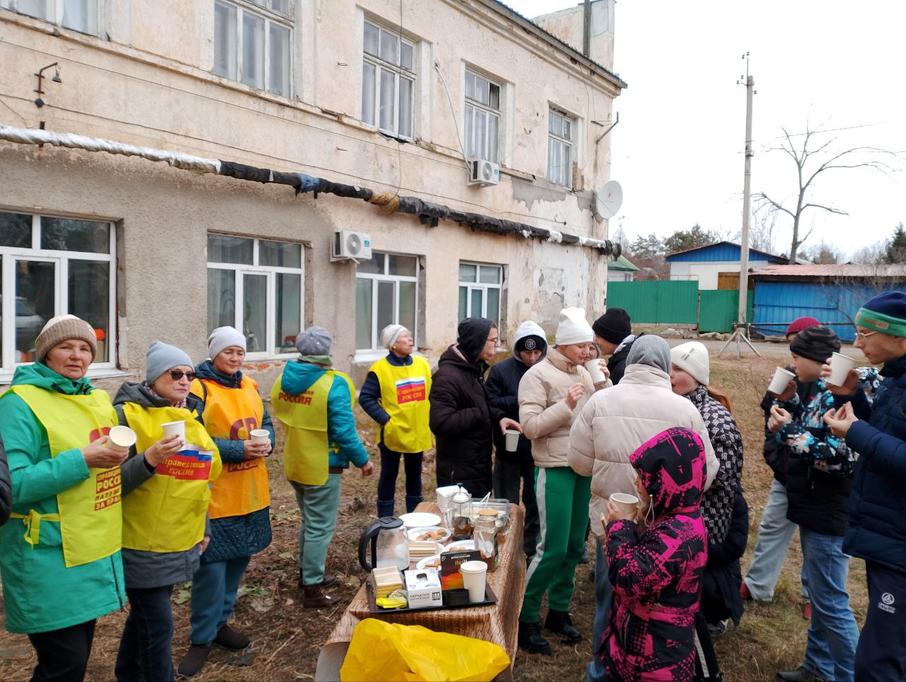 Особой атмосферой дня стало традиционное дружеское чаепитие на свежем воздухе. В перерыве между работами участники смогли отдохнуть, пообщаться в неформальной обстановке и поделиться впечатлениями от совместного труда.